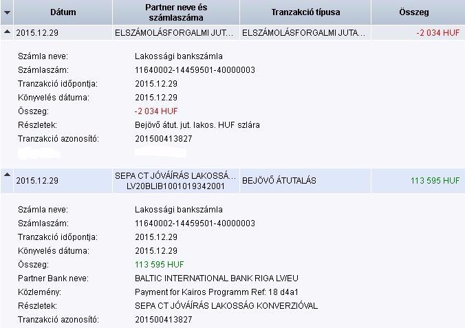A megkeresett összegekhez bankszámlára történő utalással tudunk hozzáférni. Szintén az oldal alján találsz egy bankszámlakivonatot, amiből jól látható, hogy a Kairos akár már meglévő, magyarországi lakossági folyószámlára is kiutalja a megkeresett összeget.